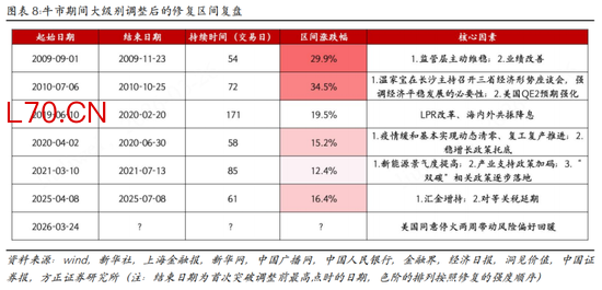 4、参考过往牛市调整后的修复行情,主线往往有两类,一是前期超跌板块的错杀,筹码结构优化+产业周期共振,典型的如2010年的周期股、2021年的宁组合和2025年的海外算力;二是产业周期并未中断,表现为调整期相对抗跌,随后政策和资金面共振推动,强者恒强,典型的如2009年的可选消费、2020年的茅指数和2019年的TMT。