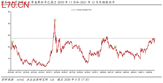 2、牛熊切换普遍发生在经济景气度回落&全A非金融ROE下行趋势中。在该背景下,若国内流动性整体收紧,海外流动性同步收紧往往会加速熊市的调整,如2010年11月、2018年1月和2021年12月;在国内经济增速相对平稳及国内流动性宽松的环境下,牛熊切换的核心影响因素为估值泡沫的刺破,如2015年6月。